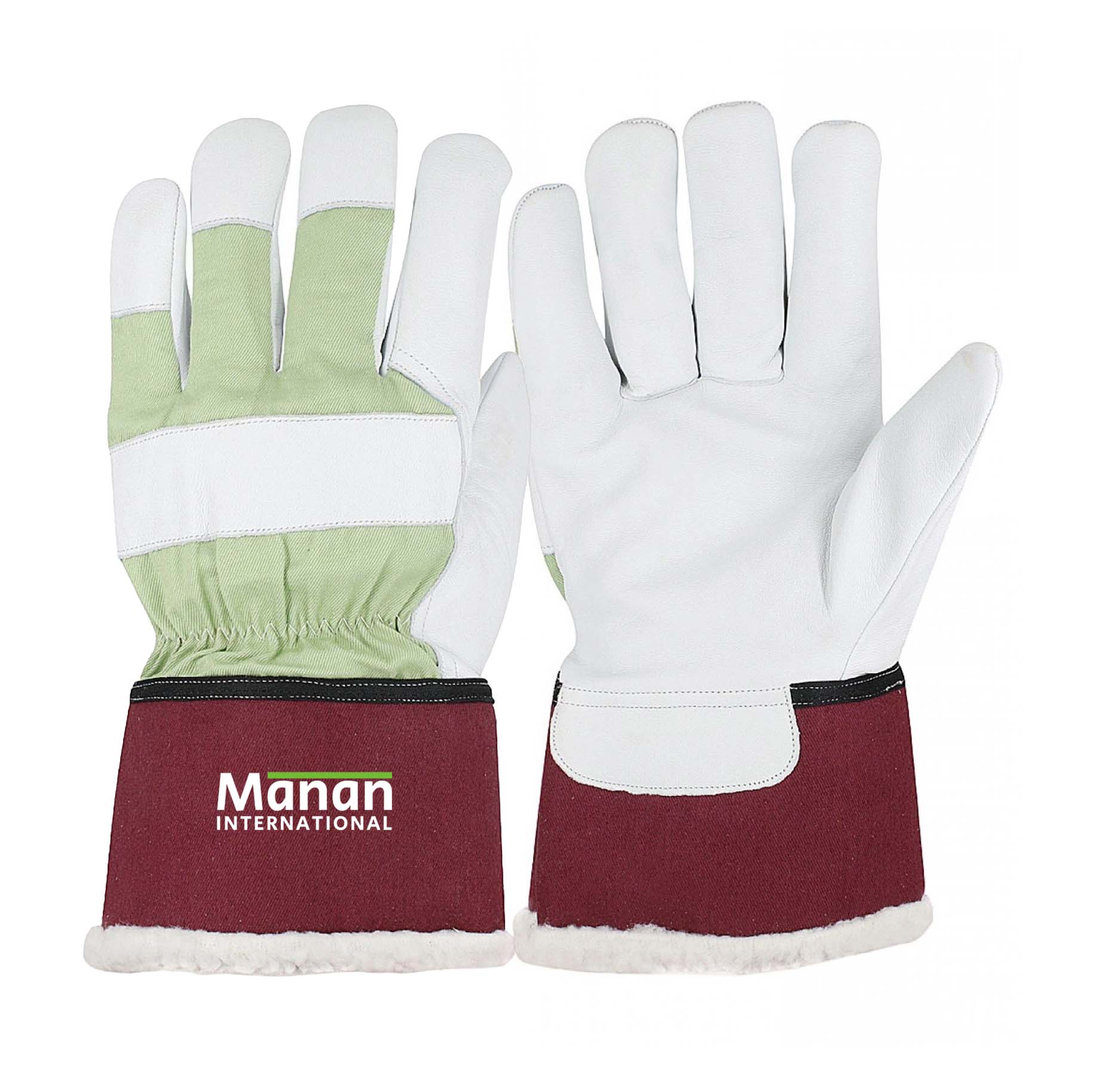 Canadian Gloves Winter / Goatskin Leather Palm Cotton Back Rubberized Cuff Pile Lined