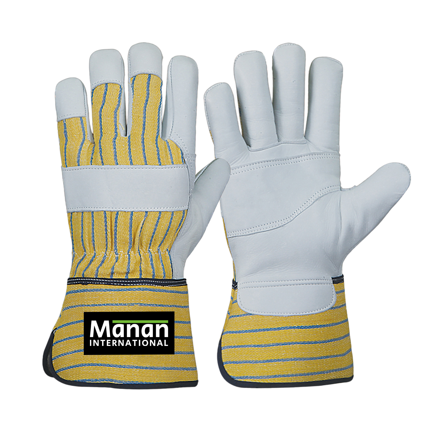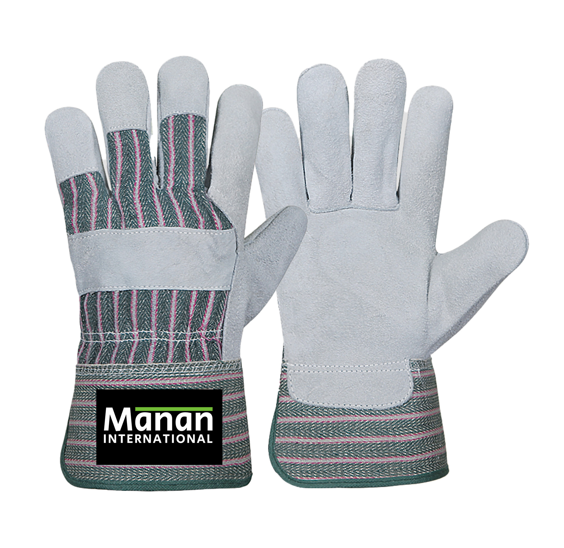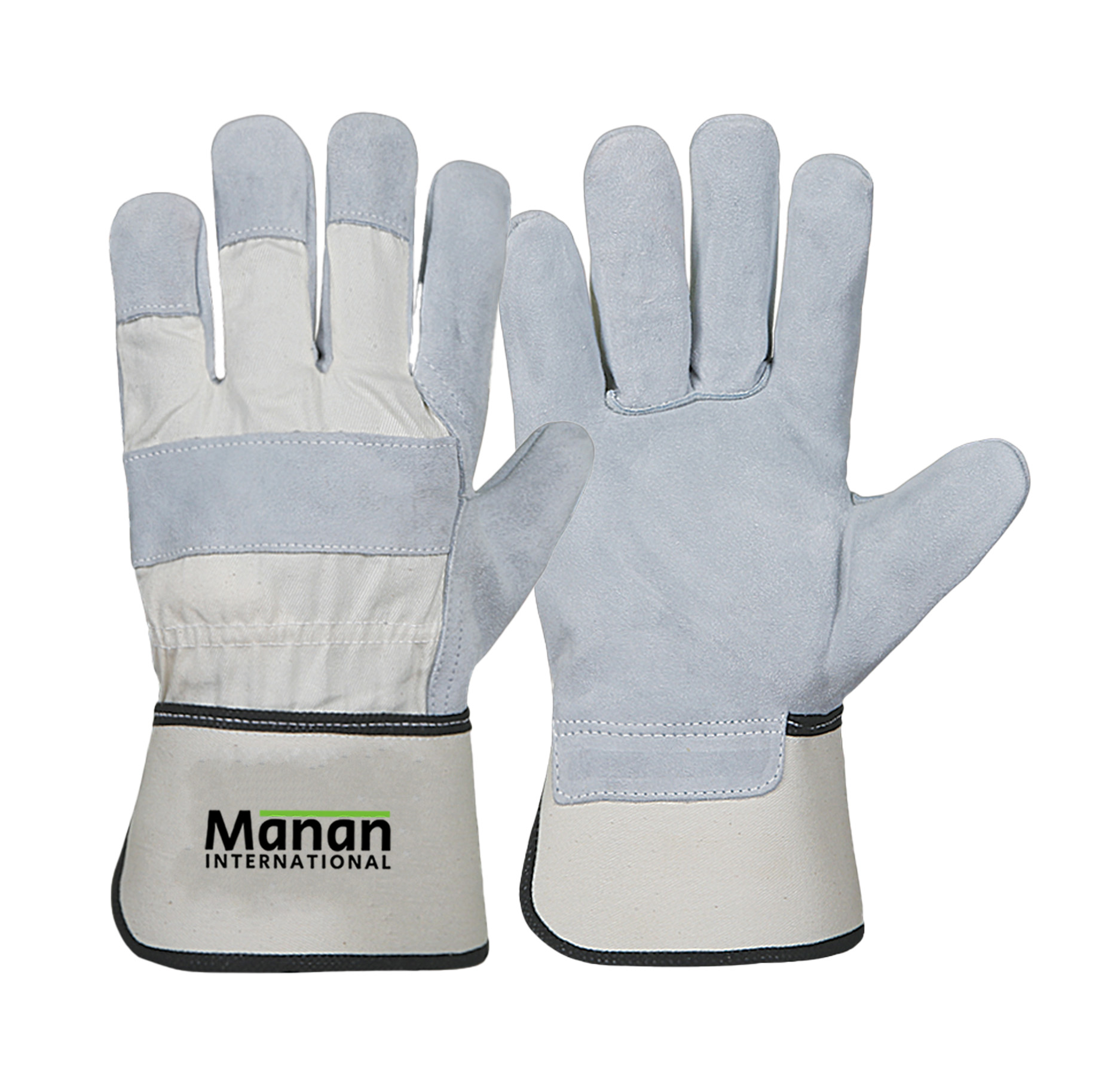 Canadian Gloves / Split Cowhide Leather Palm Drill cotton Back Rubberized Cuff Leather Knuckle Strap