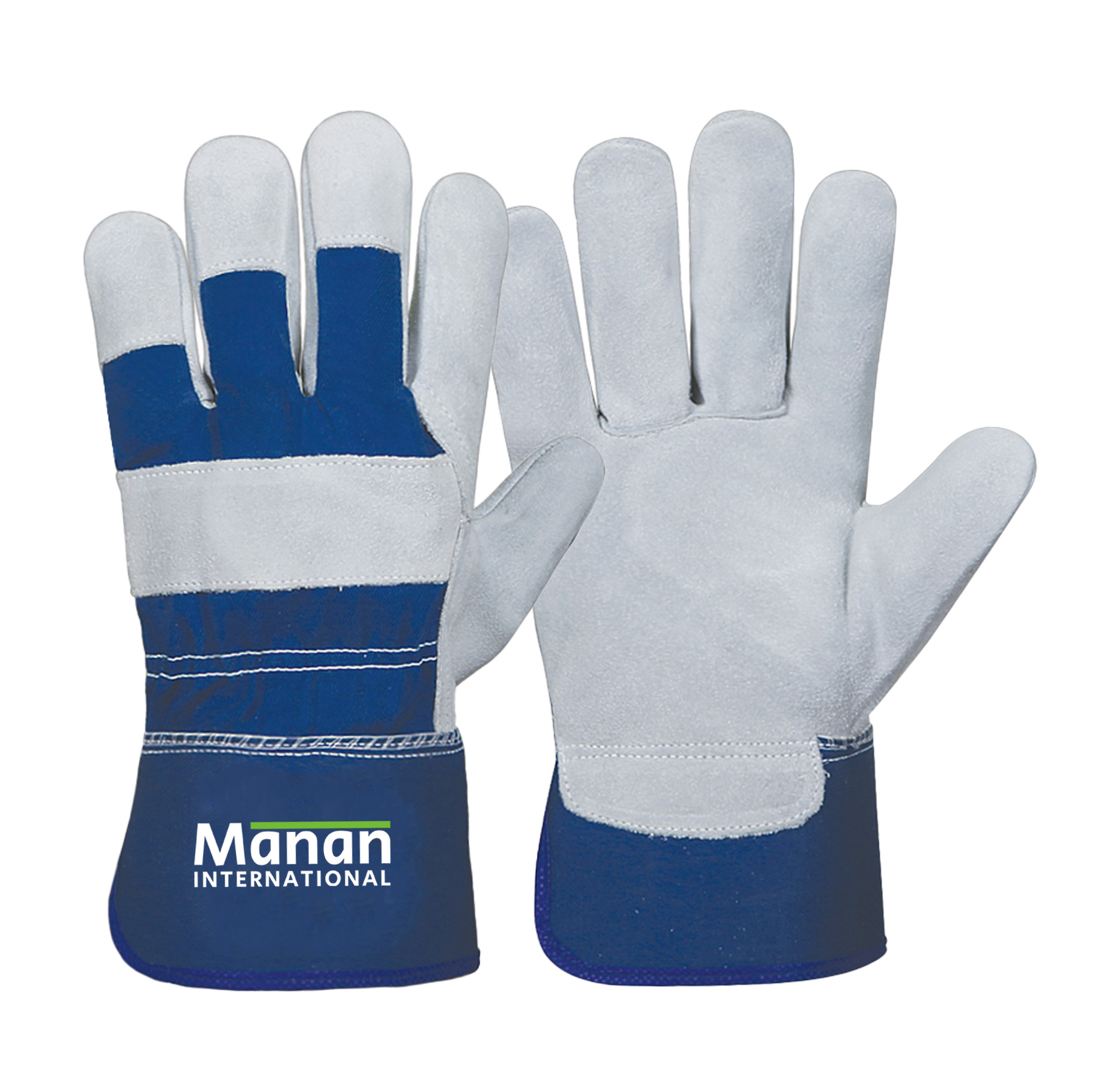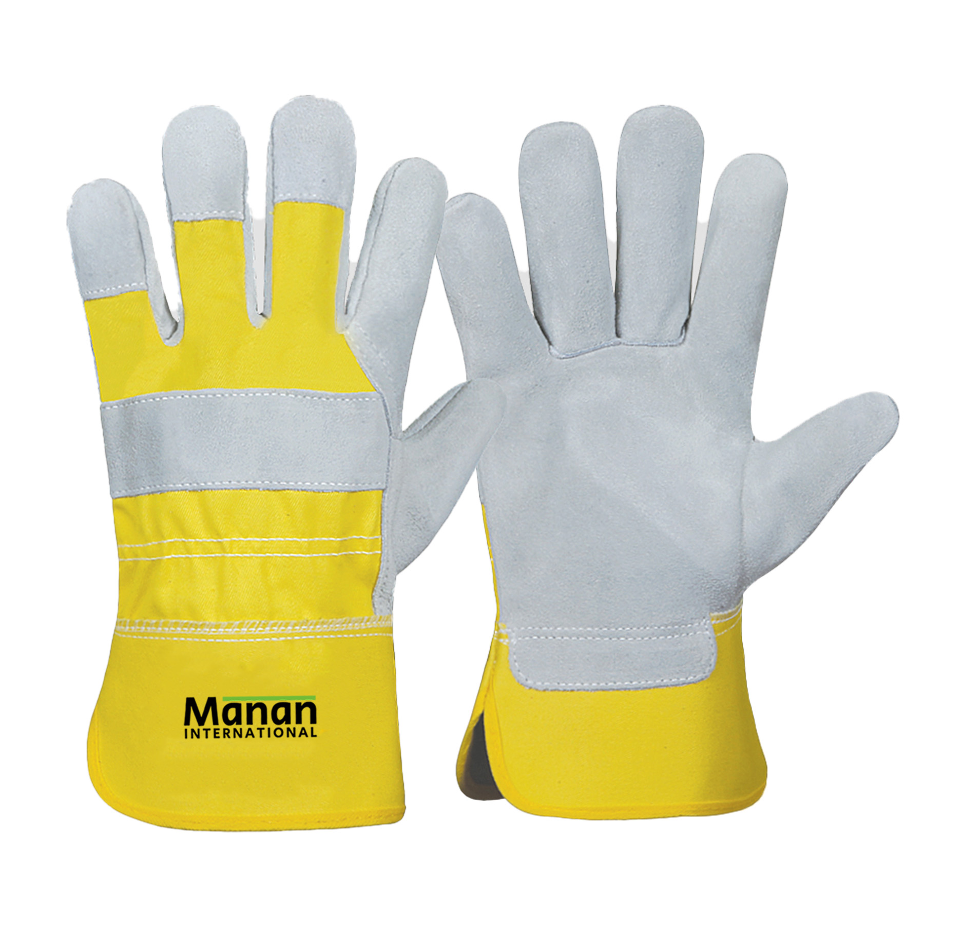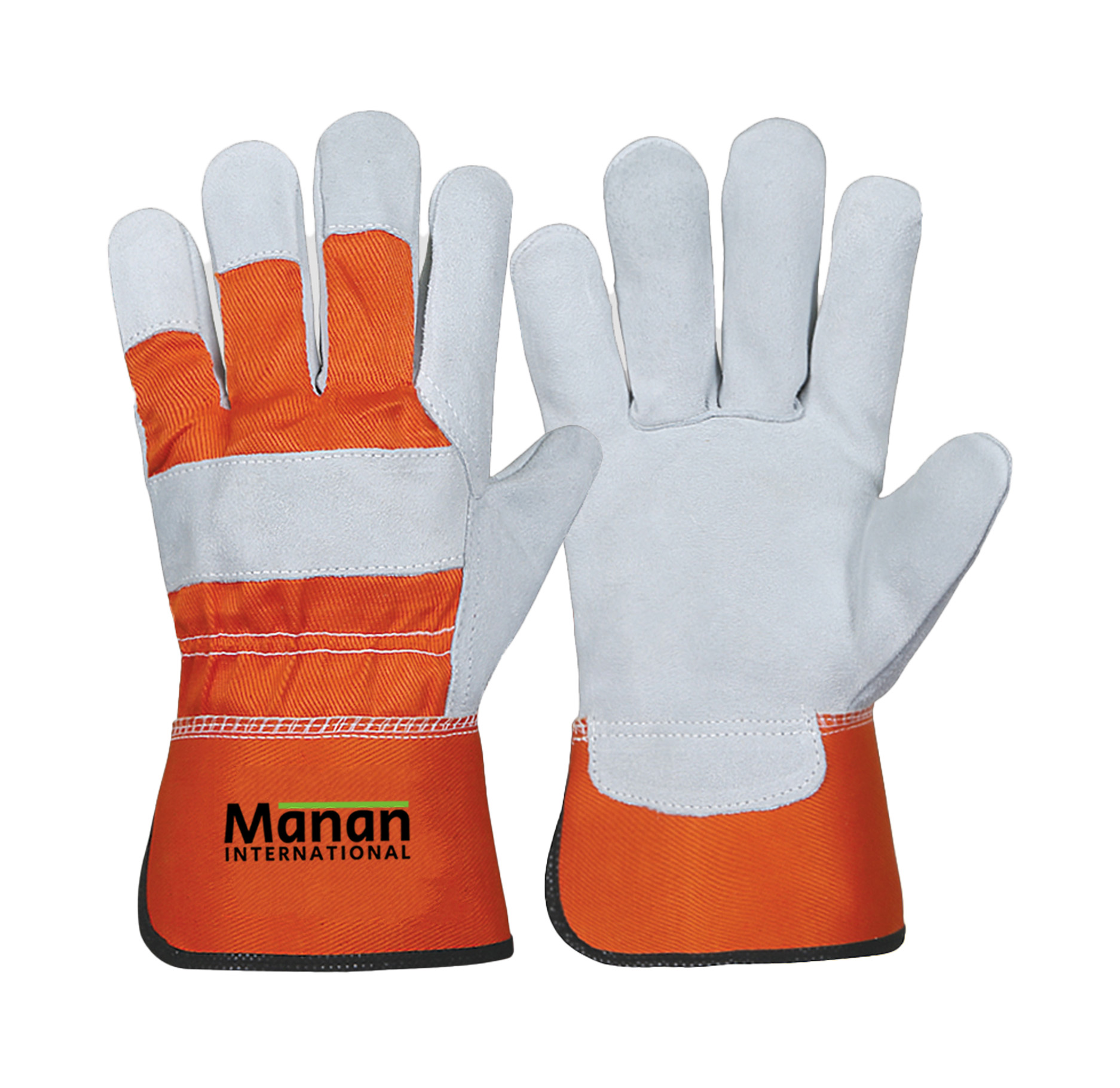 Canadian Gloves / Split Cowhide Leather Palm Drill cotton Back Rubberized Cuff Leather Knuckle Strap