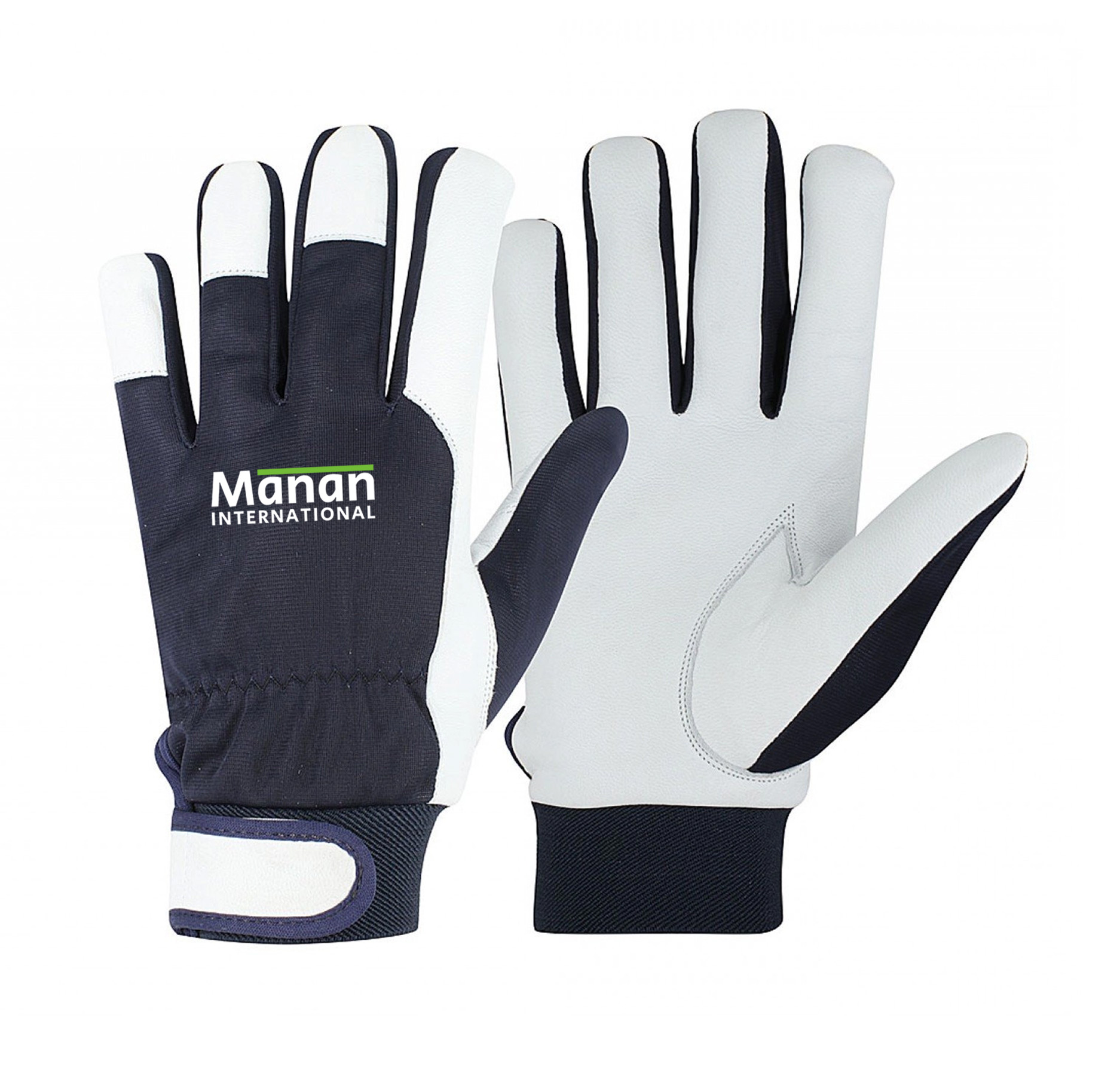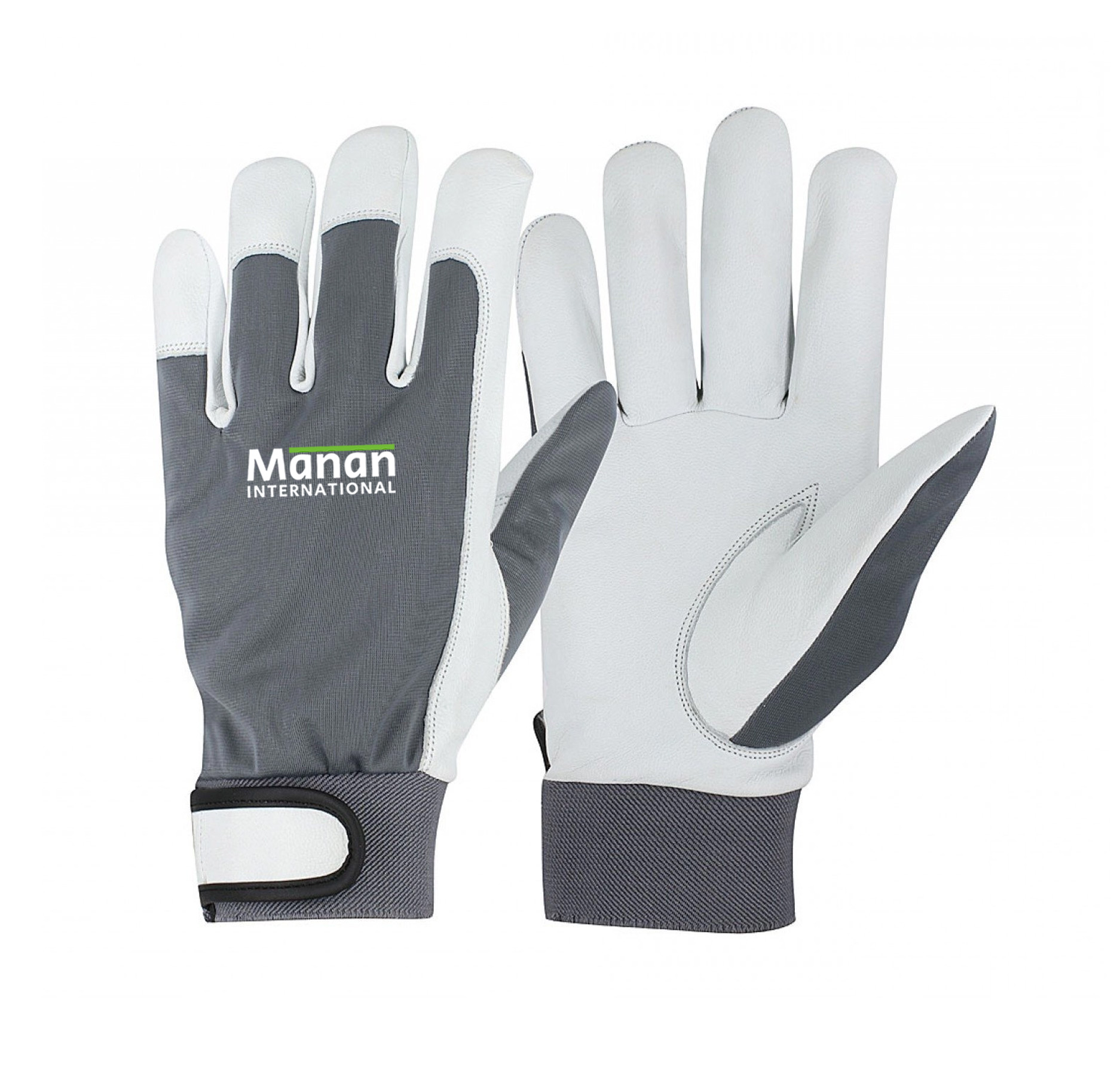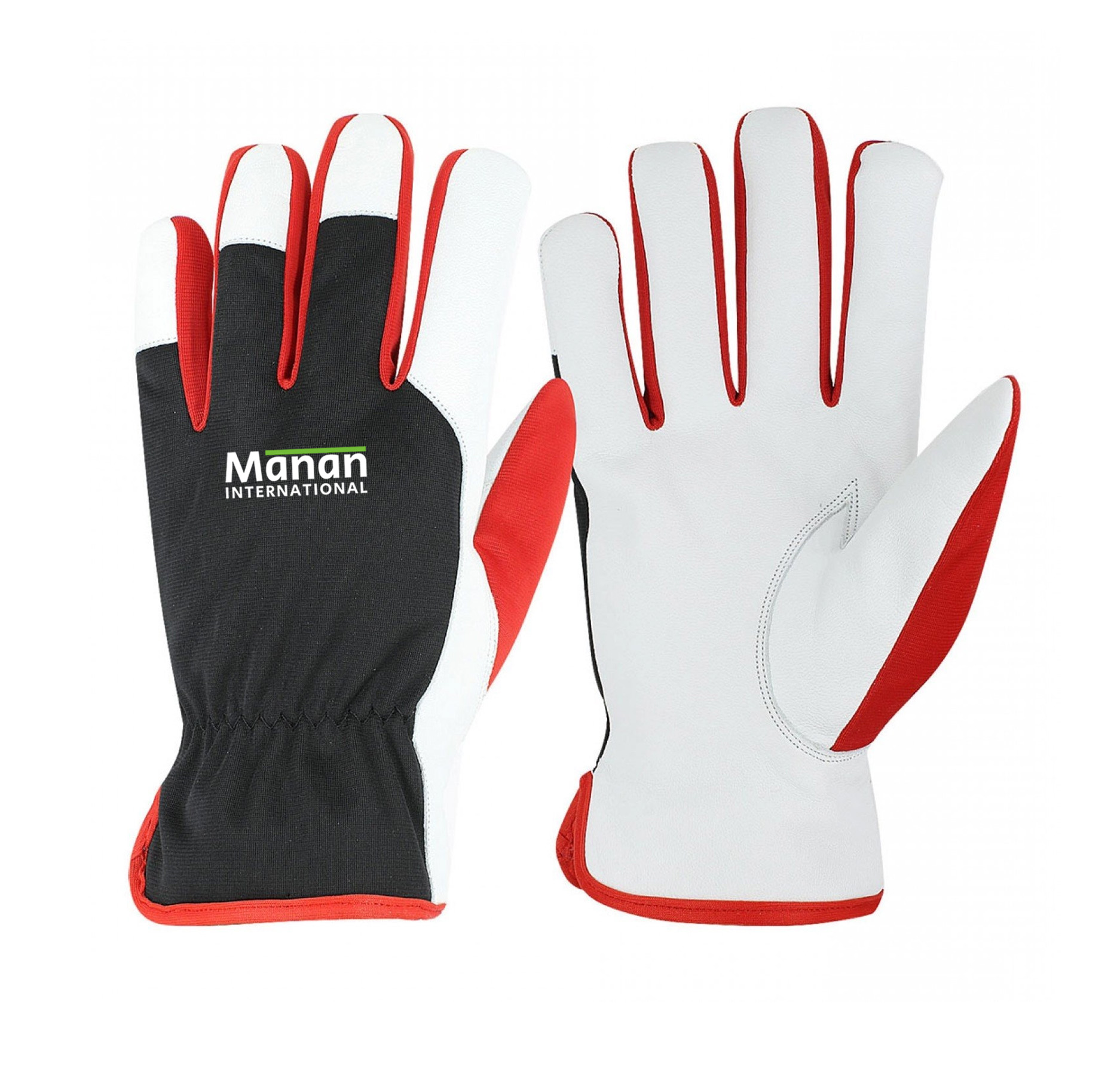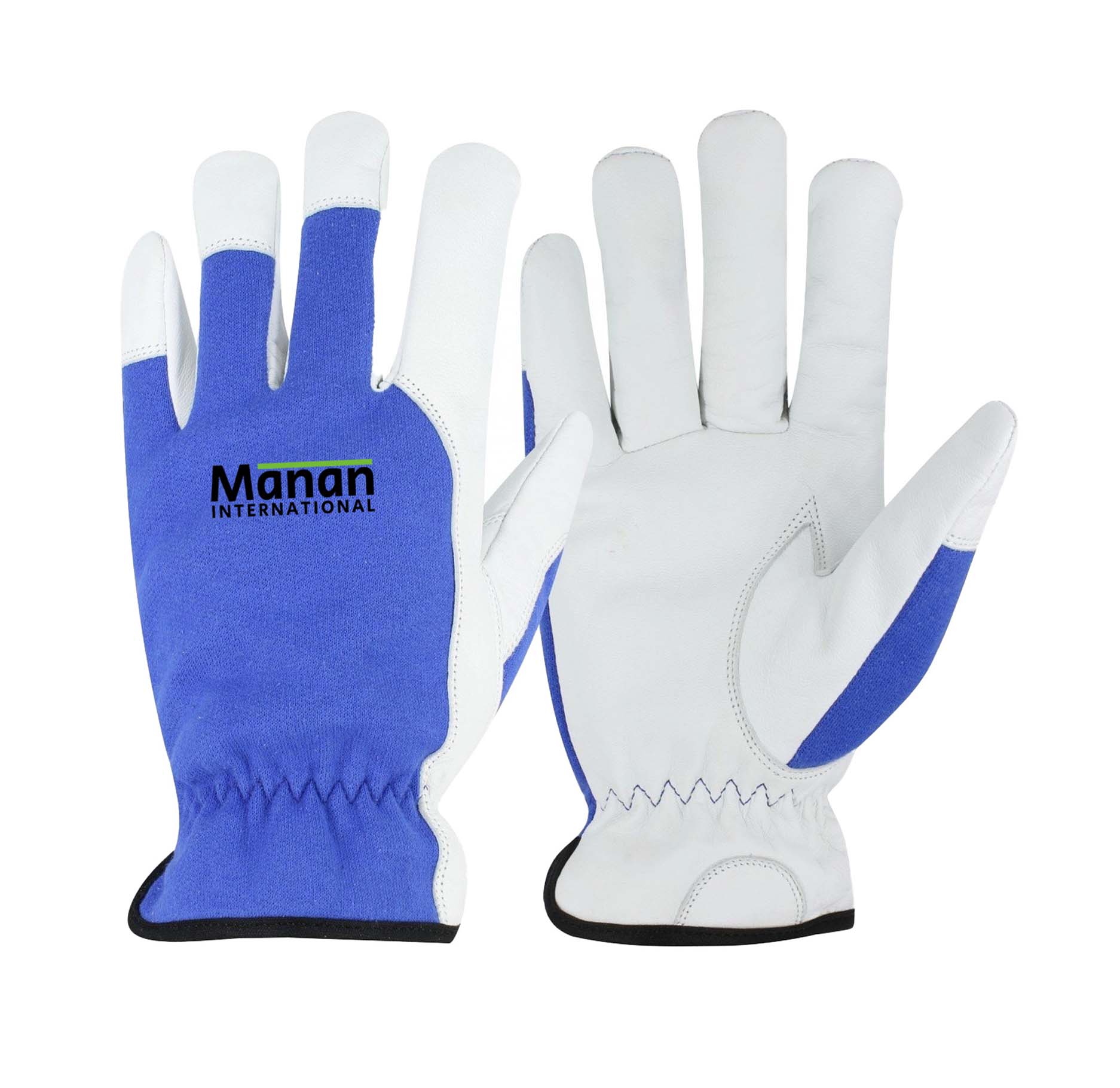 Assembly Gloves / Goatskin Leather Palm Nylon Fabric Back