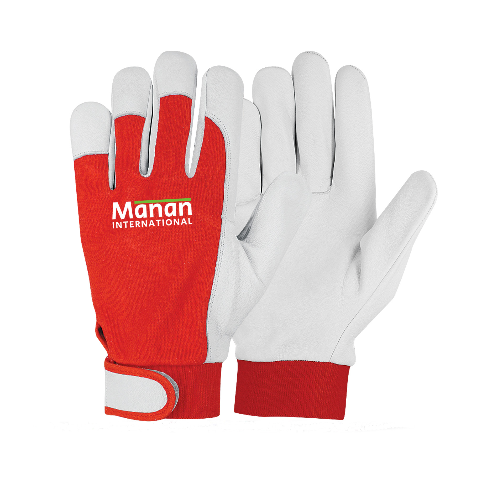 Assembly Gloves / Goatskin Leather Palm Interlock Cotton Back Red