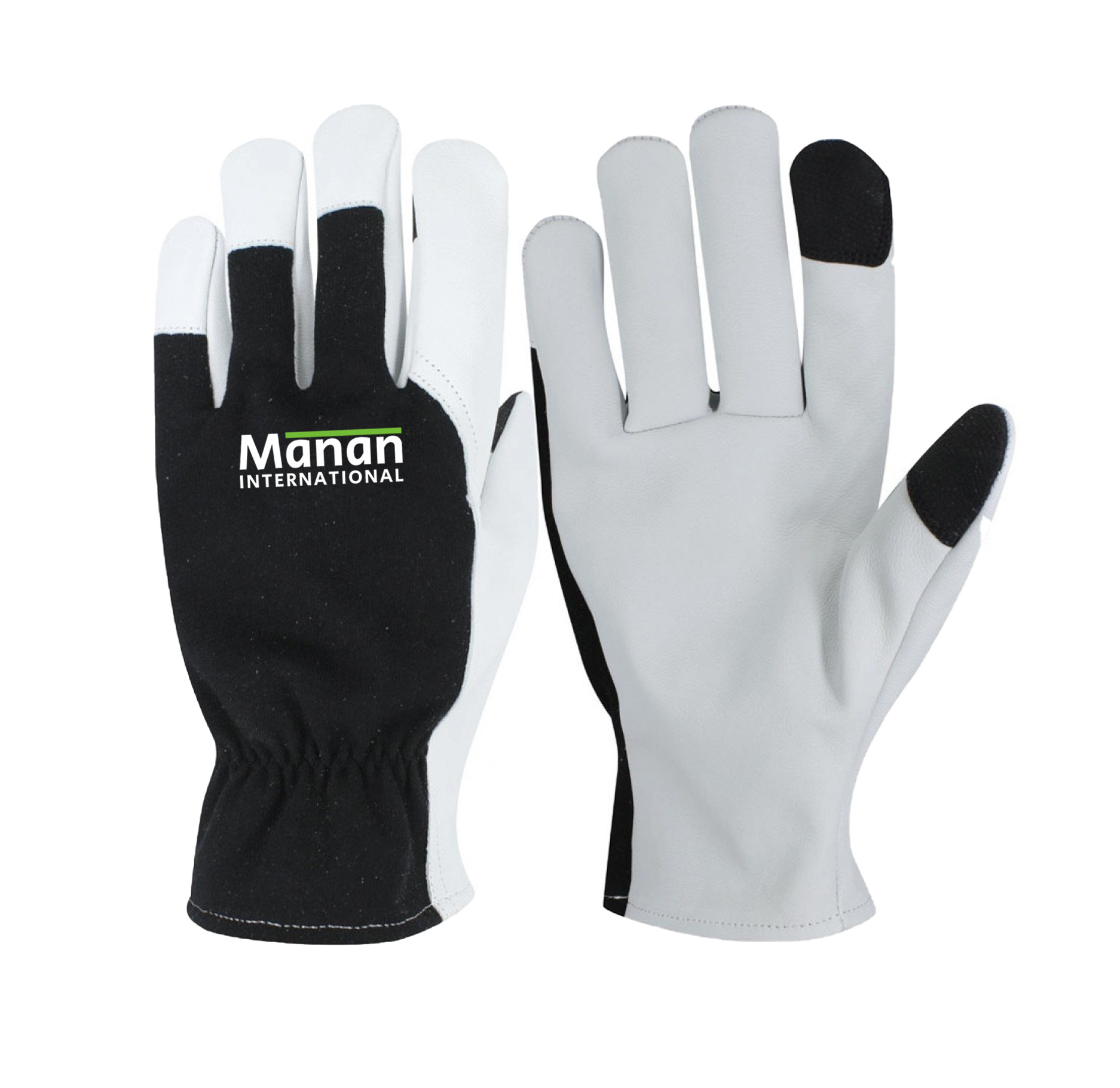 Assembly Gloves / Goatskin Leather Palm Interlock Cotton Back With Touchscreen Tips