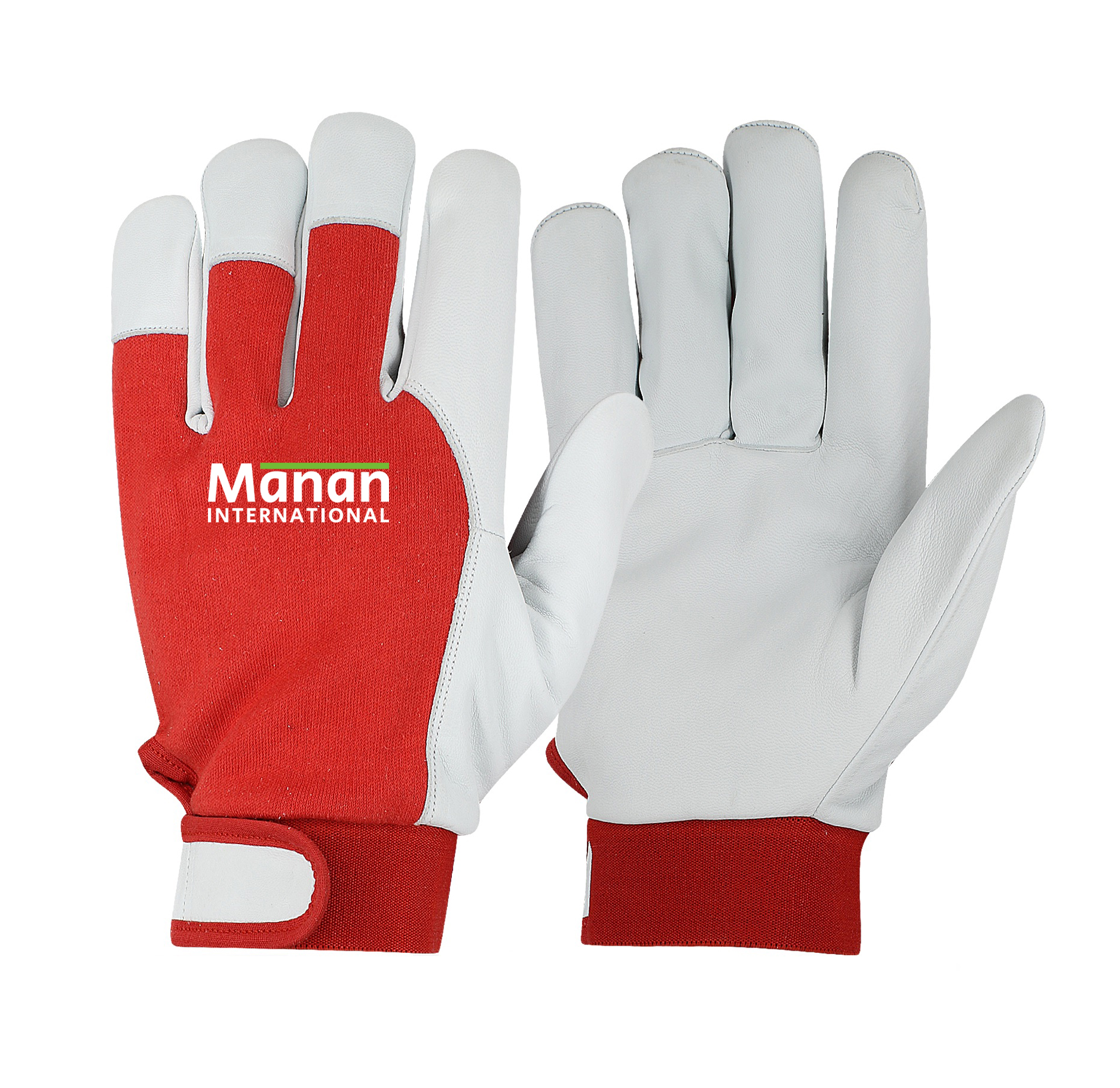 Assembly Gloves / Goatskin Leather Palm Interlock Cotton Back