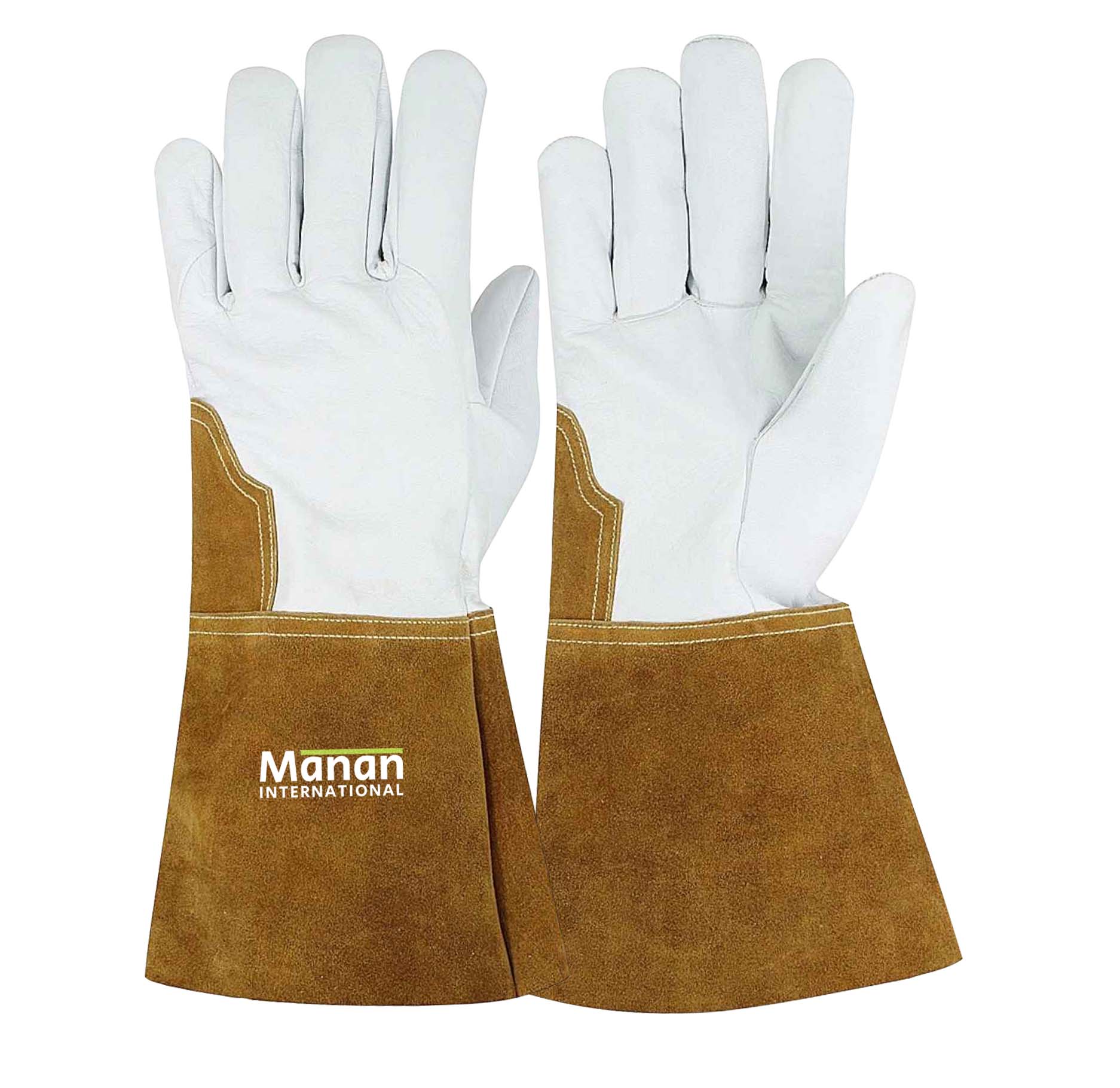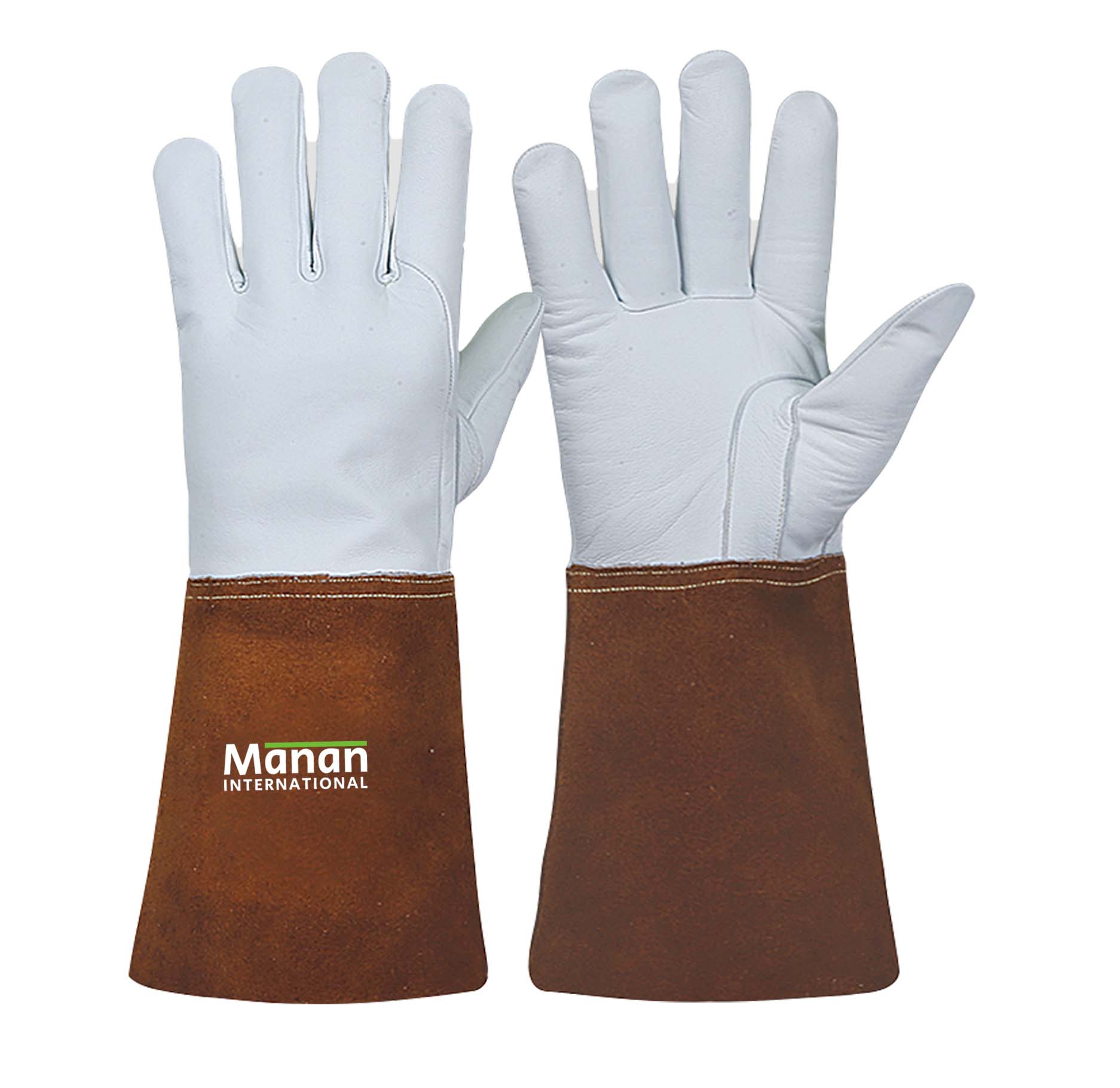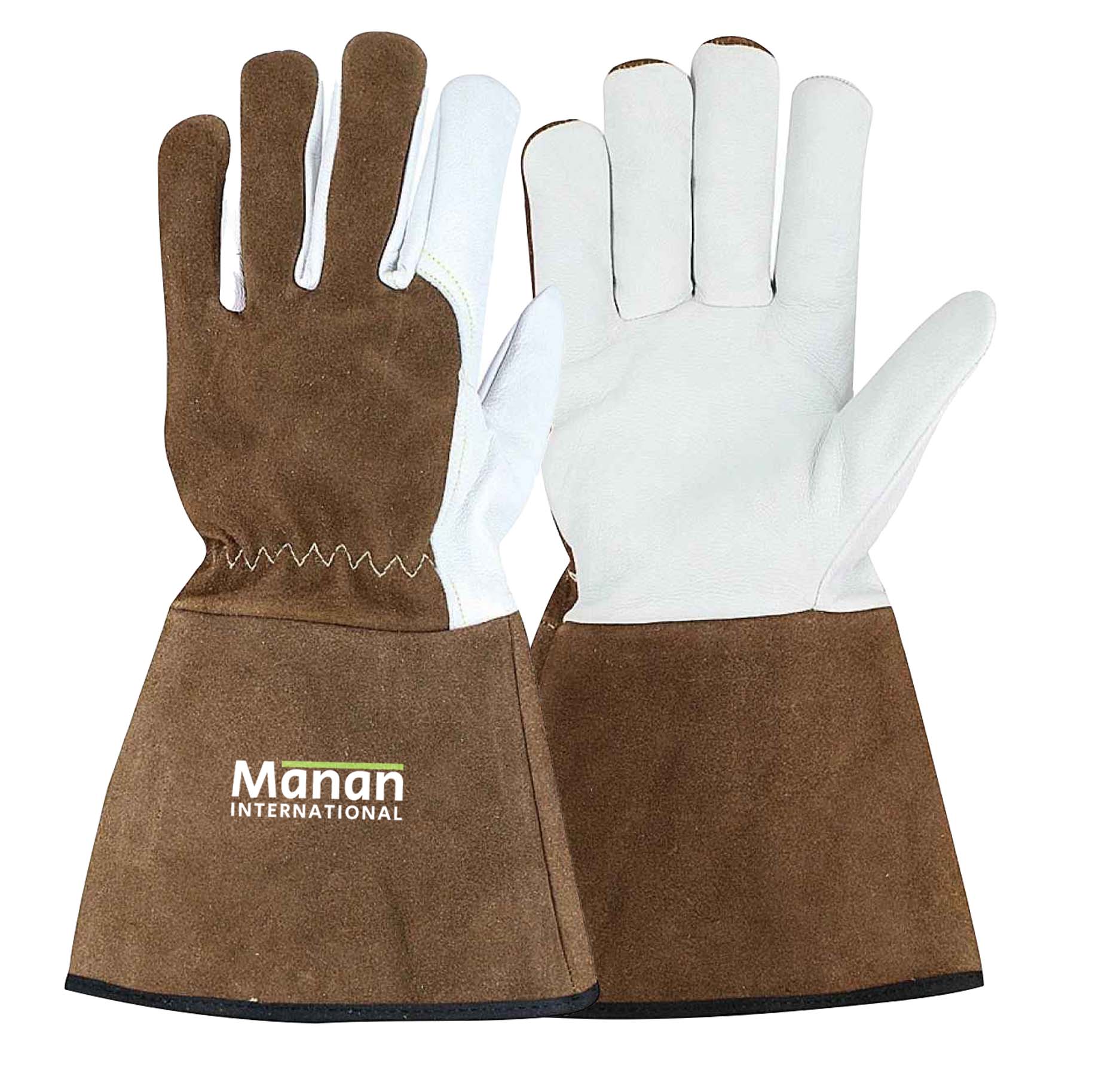 Welding Gloves / Goatskin Leather Cow Split back Wing Thumb Kevlar Stitched Stiff Cow Split Cuff Brown