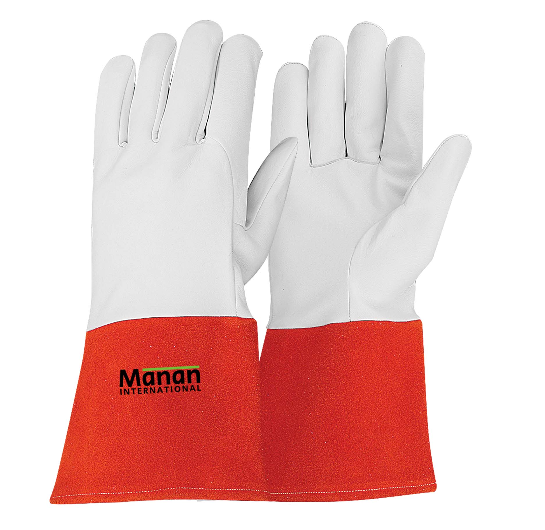 Welding Gloves / Goatskin Leather Straight Thumb Kevlar Stitched Stiff Cow Split Cuff Red