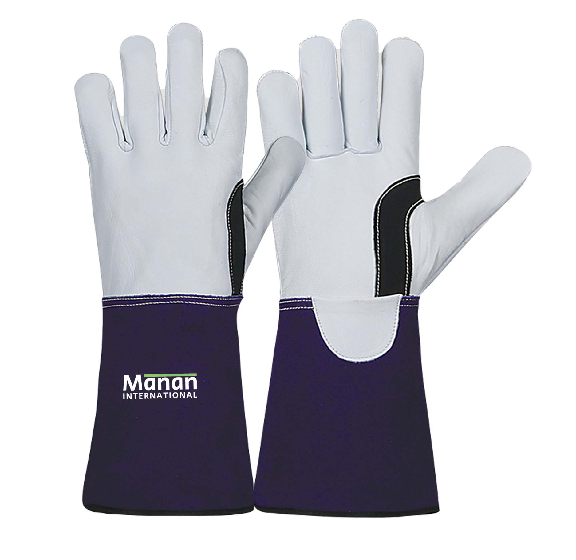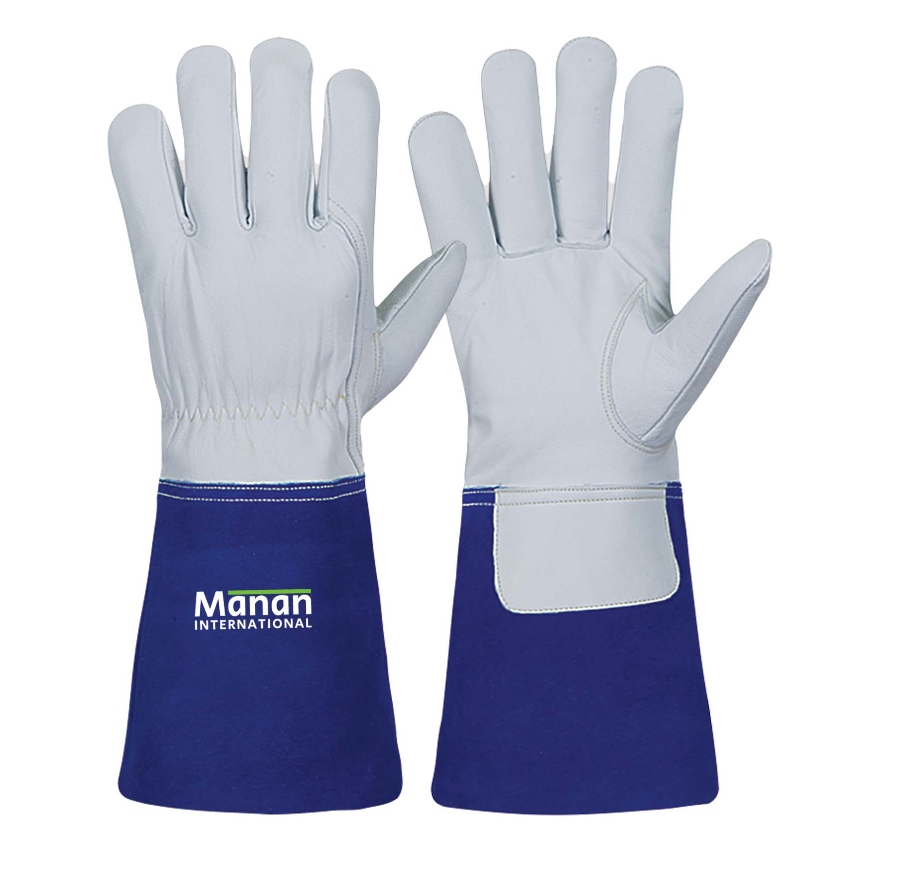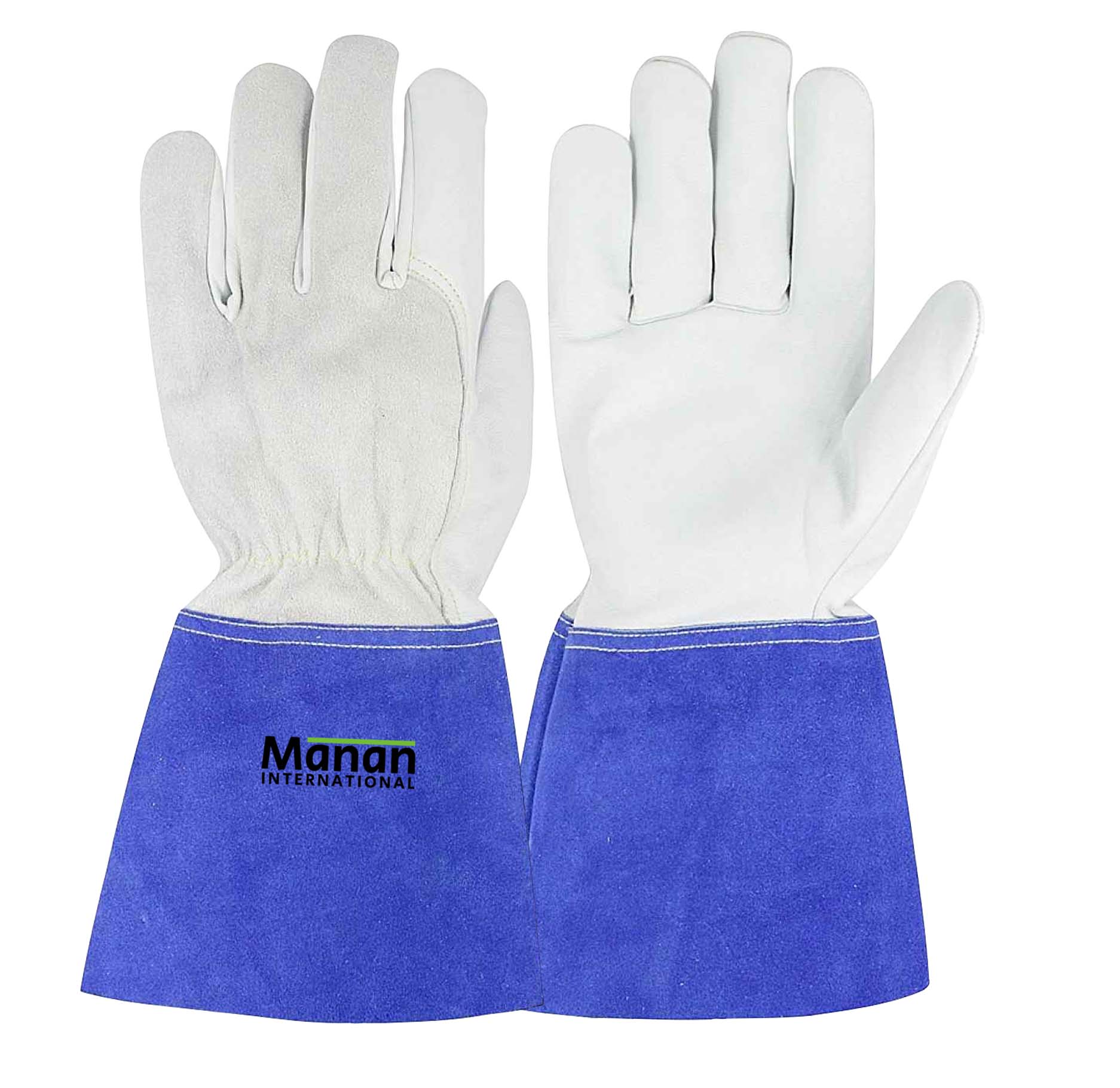 Welding Gloves / Goatskin Leather Cow Split back Wing Thumb Kevlar Stitched Cow Split Cuff Blue