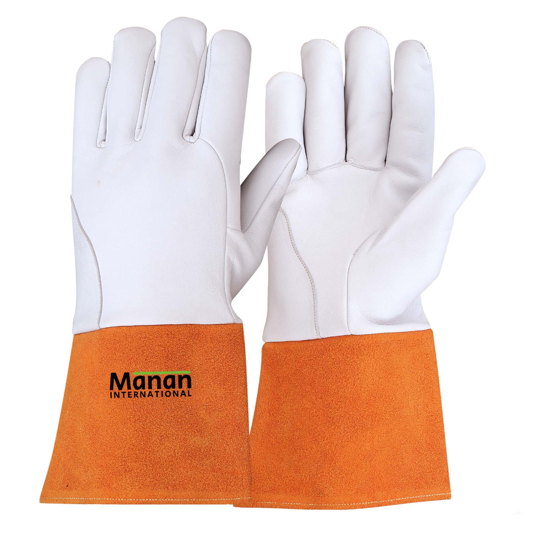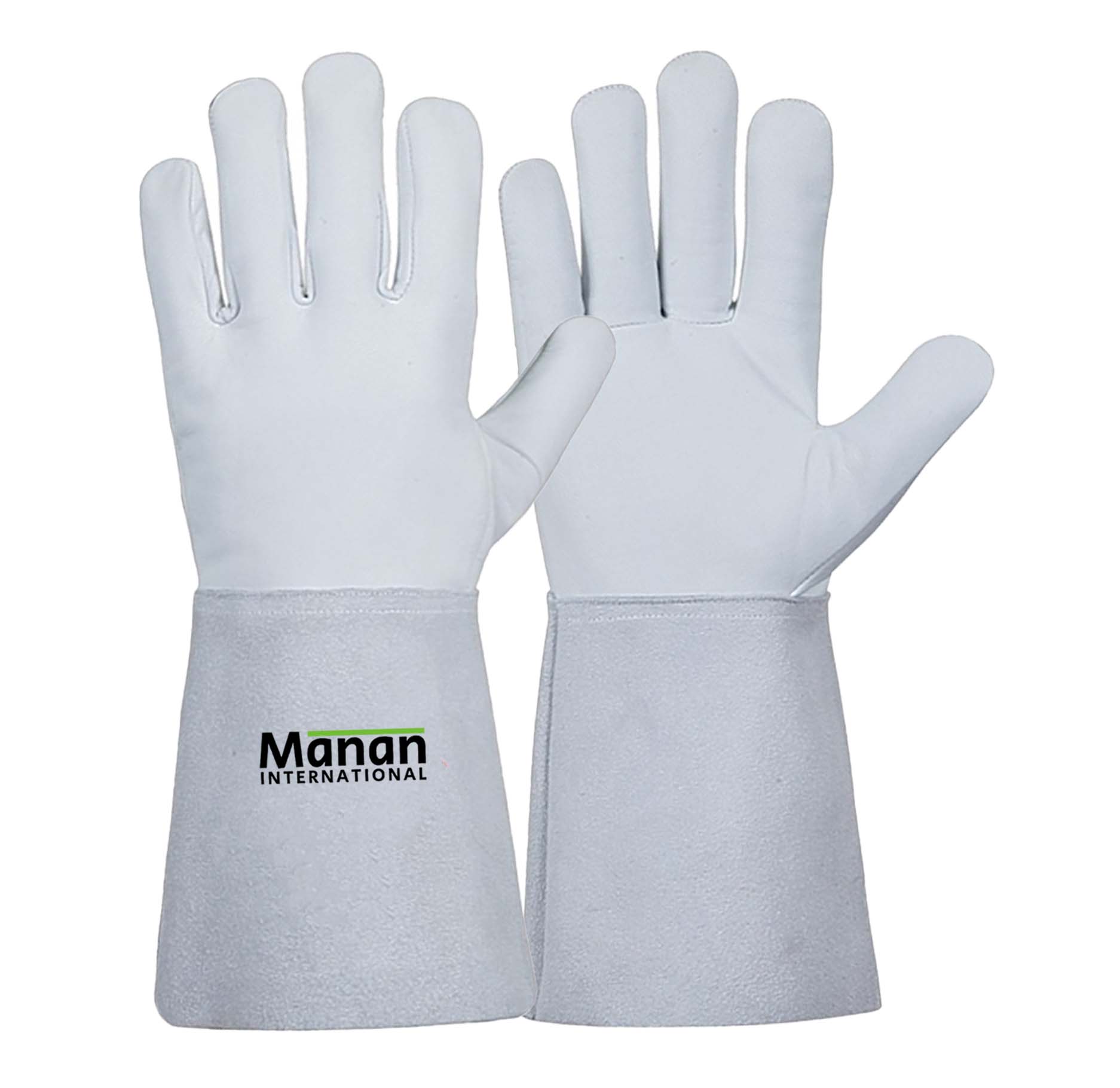 Welding Gloves / Goatskin Leather Round Thumb With Stiff Cow Split Cuff White